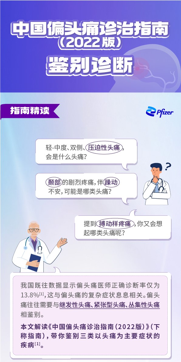 发布日期: 2024-07-18 偏头痛 偏头痛 参考文献中国医师协会神经内科医师分会,等。中国疼痛学杂志,2022,28(12):881-898. 查看原文 (辉瑞医学部和医学信息部,有效期至2026-05-17)