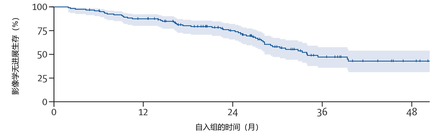 图4.独立审查委员会在全分析集中评估的无进展生存期