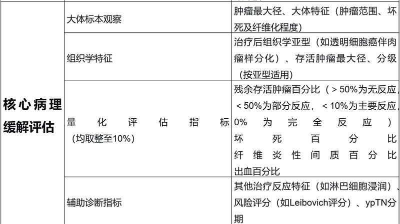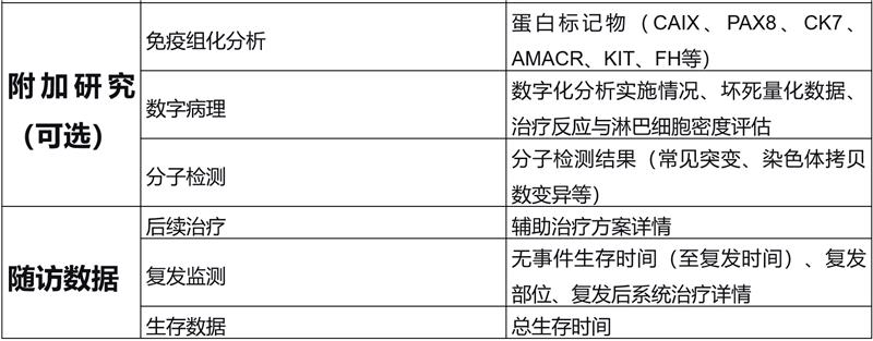 关键结果:国际肾癌新辅助治疗协作组(INKCC)关于肾细胞癌病理缓解报告的指导建议如表1所示: