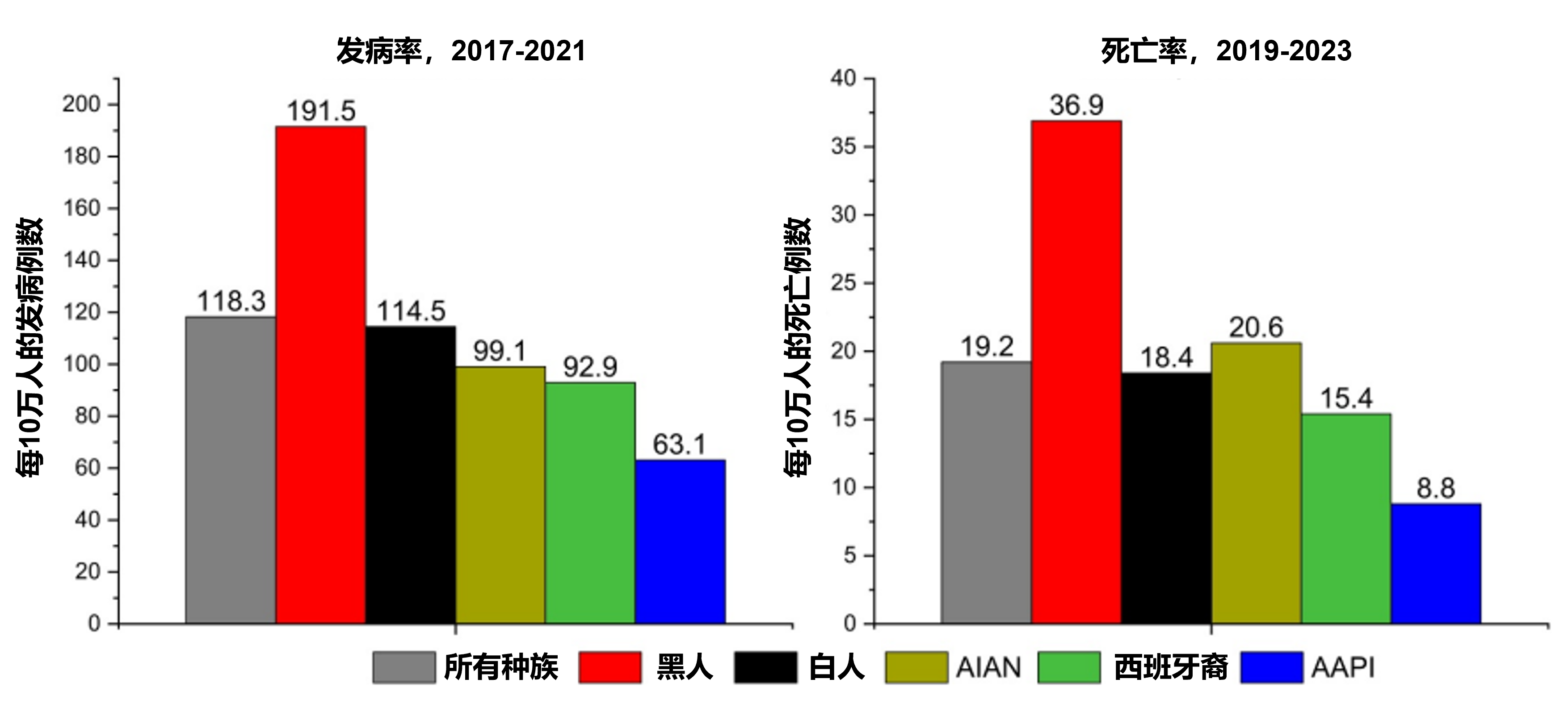 图3. 美国不同种族和族裔的前列腺癌发病率和死亡率