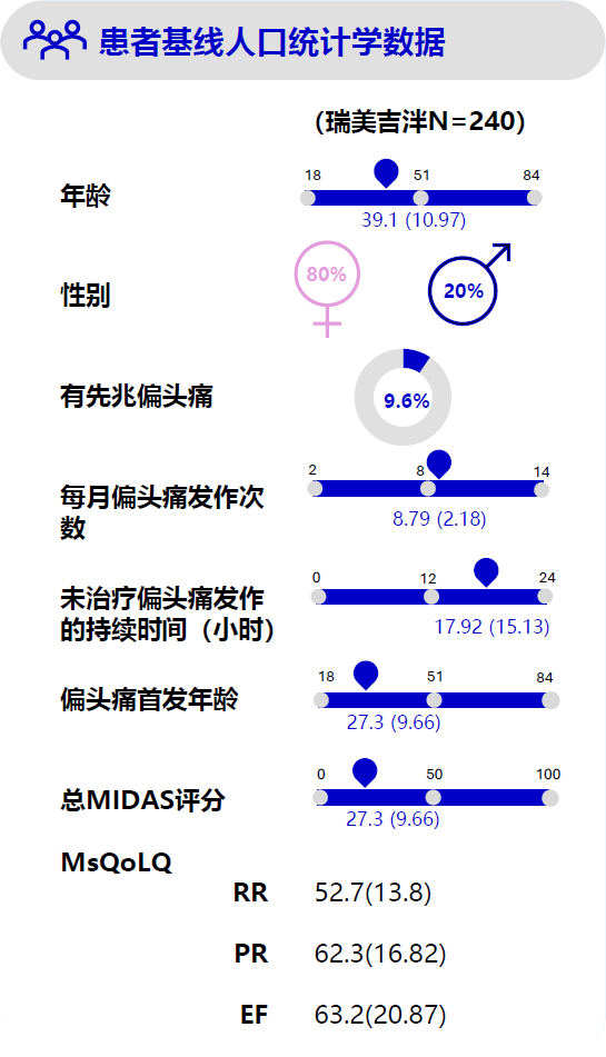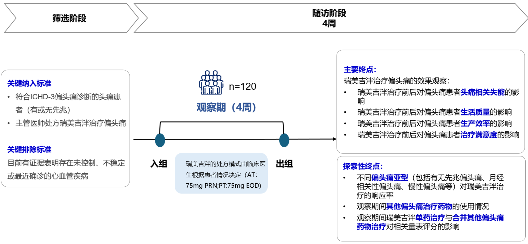 | 大湾区真实世界研究 19 | 急性用药 中国患者 真实世界研究 | 急性治疗 | 瑞美吉泮治疗偏头痛的效果观察: