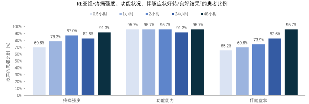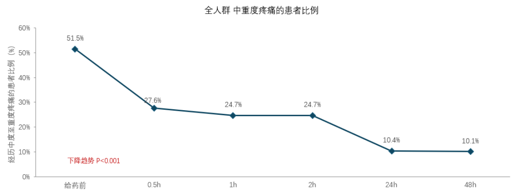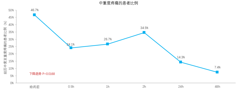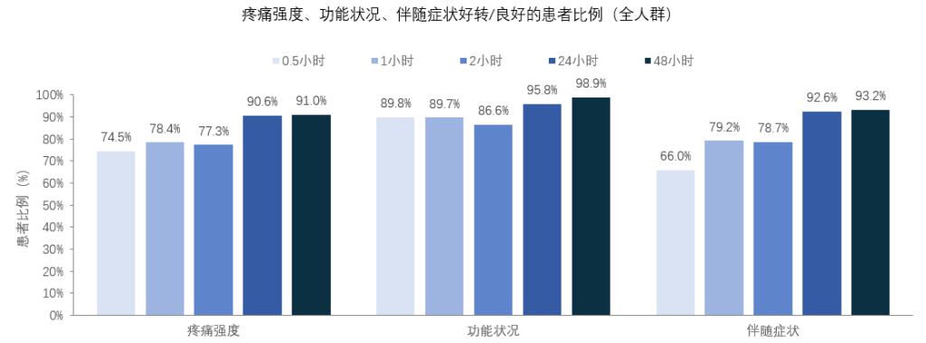 - 主要终点:给药后2小时无痛比例、给药后2小时无最困扰的症状 (MBS) 比例。