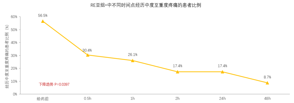 单剂给药后患者2-24小时和2-48小时持续无疼痛率,瑞美吉泮组显著优于安慰剂组。3